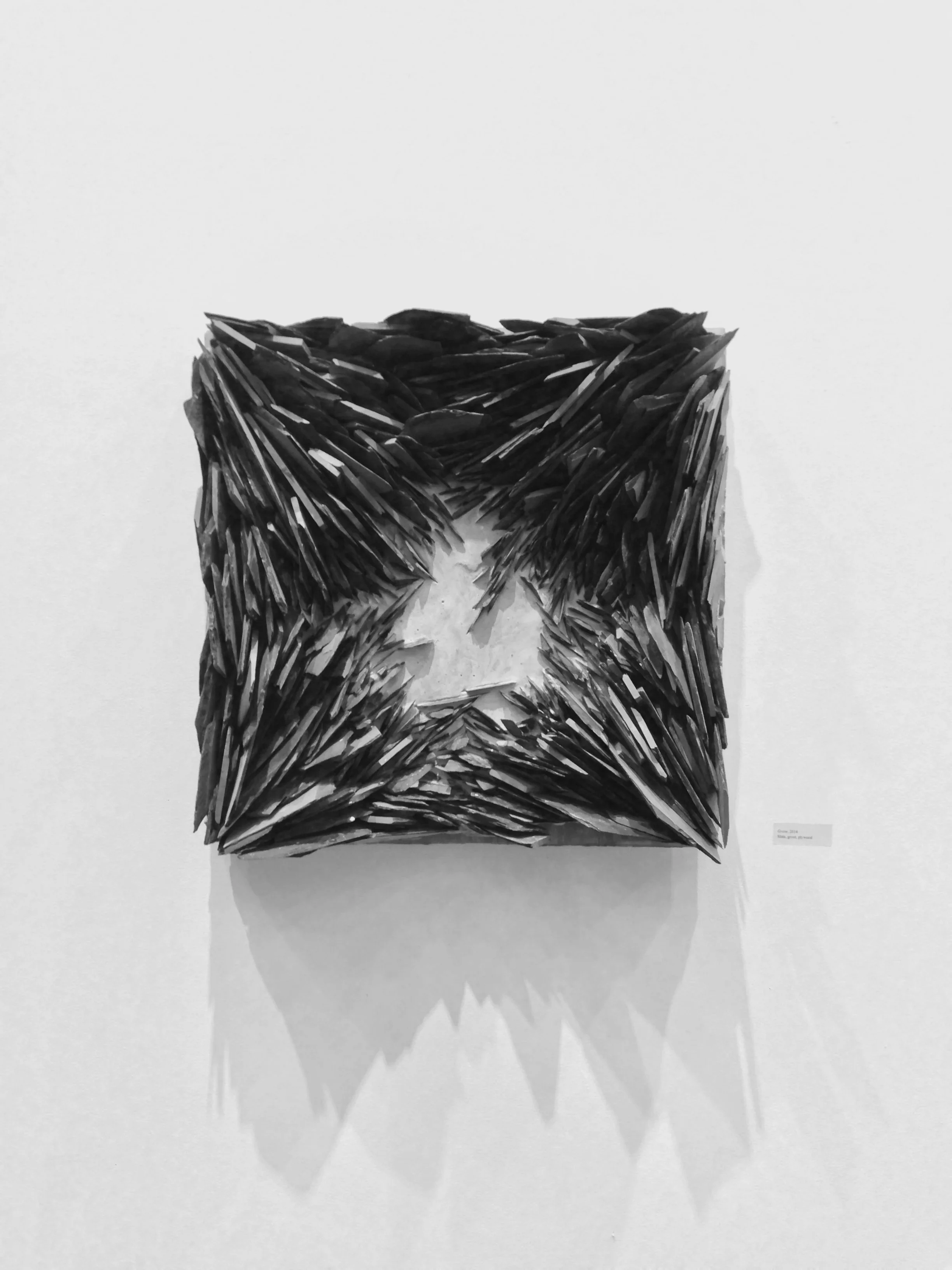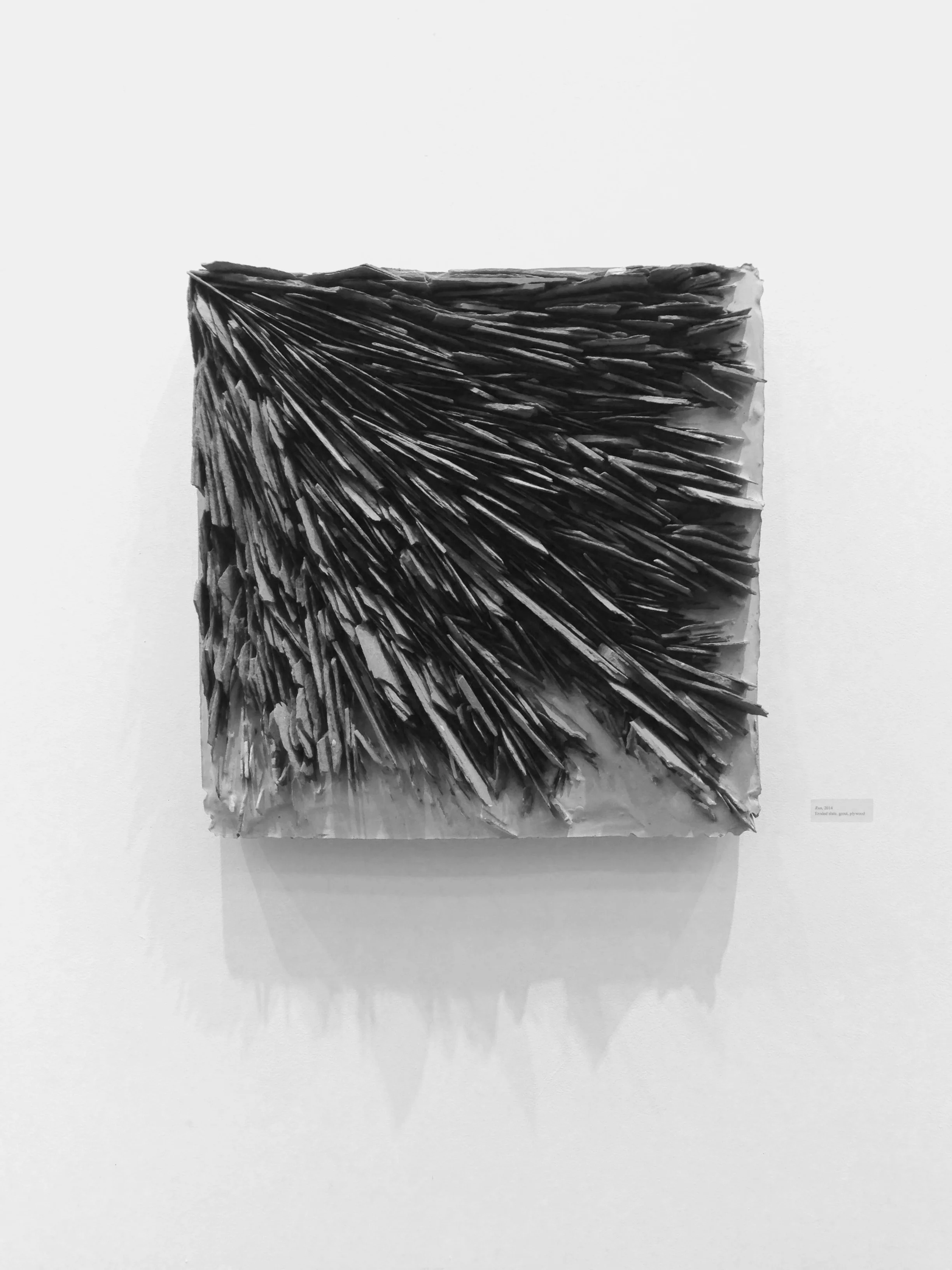 For my senior solo show entitled Foliation, I created a series of wall hanging rock sculptures, and Flood, an installation of phyllite in the corner of the gallery.